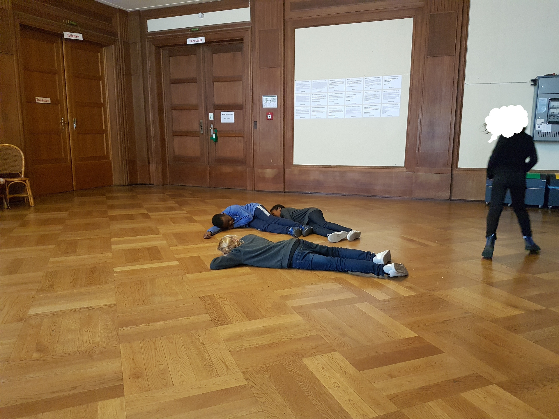 Zum Abschluss der Aufwärmphase sollten dann bereits Tiere mit ihren charakteristischen Eigenschaften dargestellt werden. Wichtig dabei war, dass, egal welches Tier man sich aussuchte, das Tier auf zwei Beinen ging und Arme und Beine zum Spieln gebraucht wurden. Den Elefantenrüssel mit den Armen darzustellen, war also tabu.
