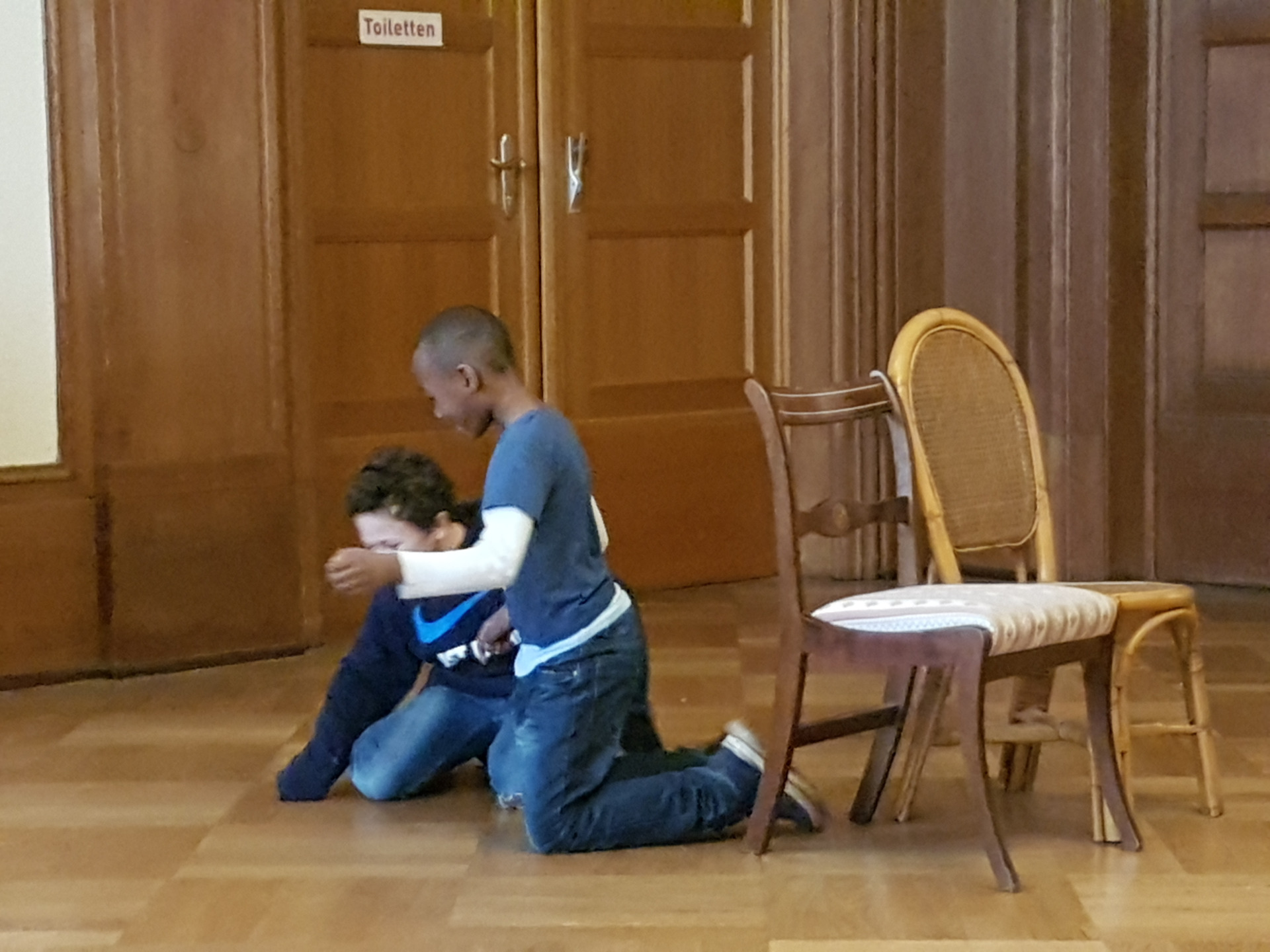 Kreuz und quer durcheinander zu laufen, ohne sich dabei anzurempeln oder auch nur zu berühren war gar nicht so einfach. Noch schwieriger wurde es, als man sich anschauen sollte, aber dabei nicht lachen durfte. Nach und nach hatte jeder seine eigene Strategie entwickelt, um diese Aufgaben zu bewältigen.