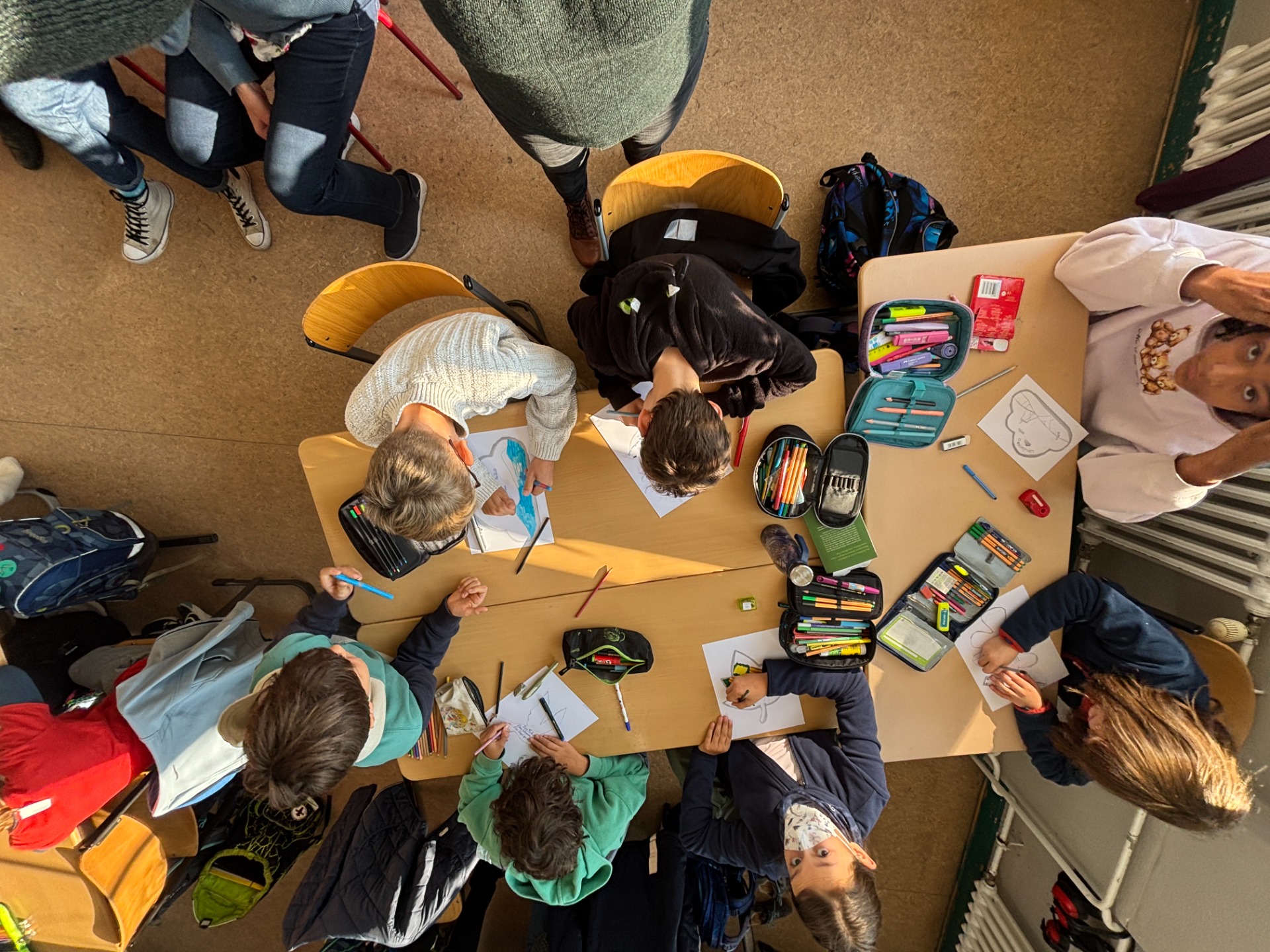 Die Klasse 5a arbeitet nahm an zwei Tagen an einem Friedensprojekt des House of one teil. Bei einem ersten Termin in der Schule ging es darum, das Thema Frieden zu beleuchten und, nach einer kleinen Fantasiereise, den eigenen Rückzugsort, dort, wo man selbst Frieden spüren kann, bildlich darzustellen.